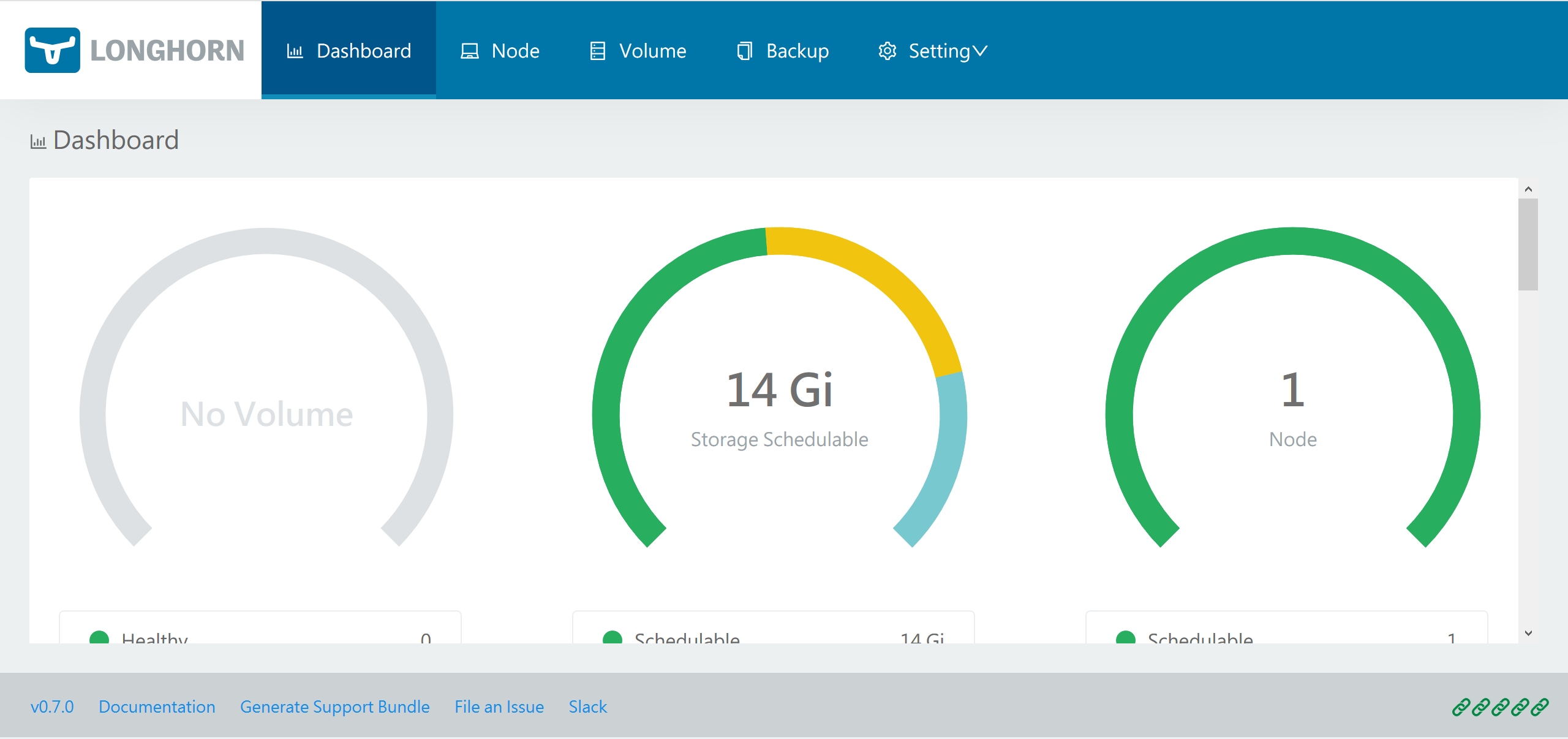 If you installed Longhorn using the kubectl instructions above, the Longhorn UI does not require authentication.The Longhorn UI looks like this: